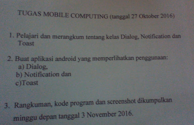 Sebelum kita ke kode programnya, kita akan mengenal terlebih dahulu apa yang dimaksud dengan Notification, Dialog dan juga Toast.